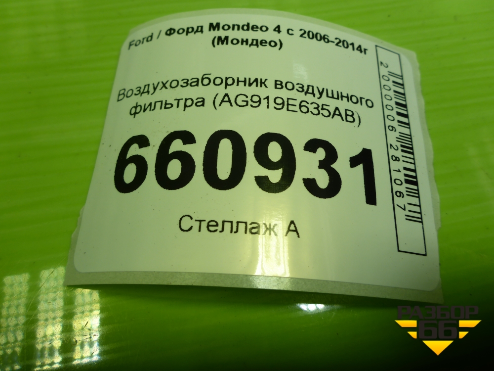 Воздухозаборник воздушного фильтра (AG919E635AB) для Ford Mondeo 4 с 2006-2014г (Мондео) в Москве