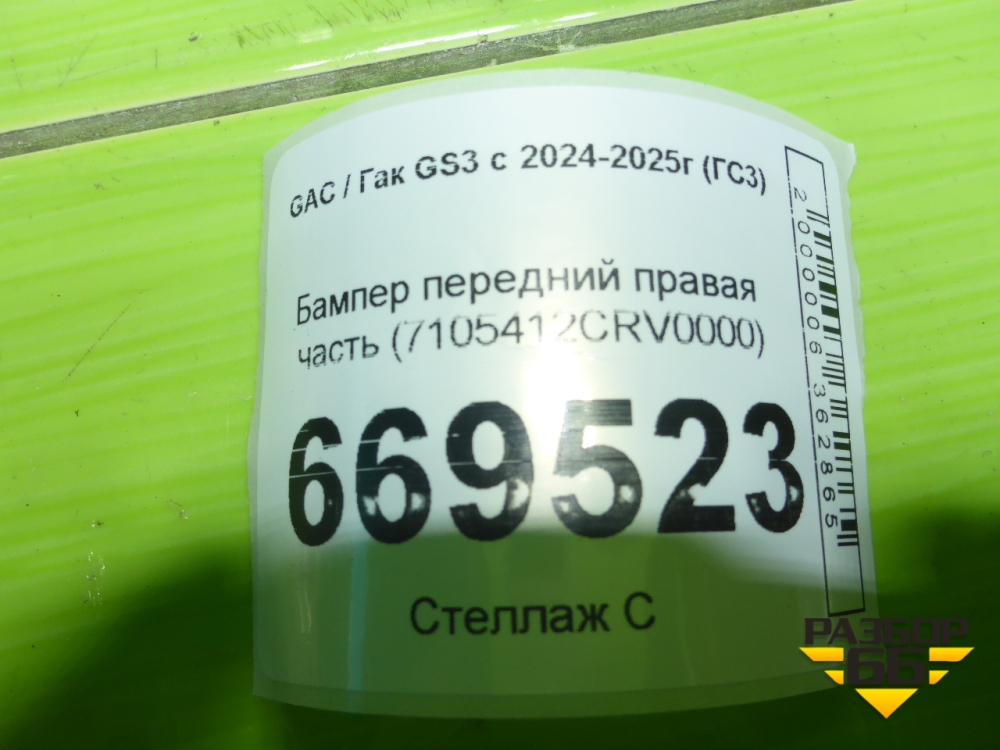 Бампер передний правая часть (7105412CRV0000) для GAC GS3 с 2024-2025г (ГС3) в Москве