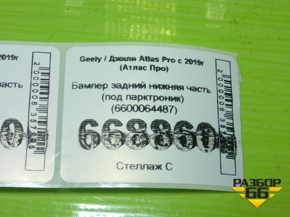 Бампер задний нижняя часть (под парктроник) (6600064487) для Geely Atlas Pro с 2019г (Атлас Про) в Москве