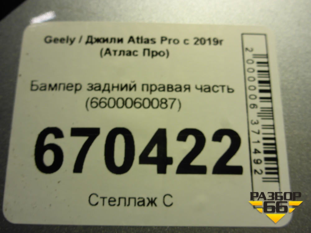 Бампер задний правая часть (6600060087) для Geely Atlas Pro с 2019г (Атлас Про) в Москве