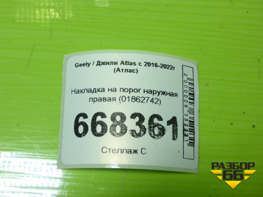 Накладка на порог наружная правая (01862742) для Geely Atlas с 2016-2022г (Атлас) в Москве