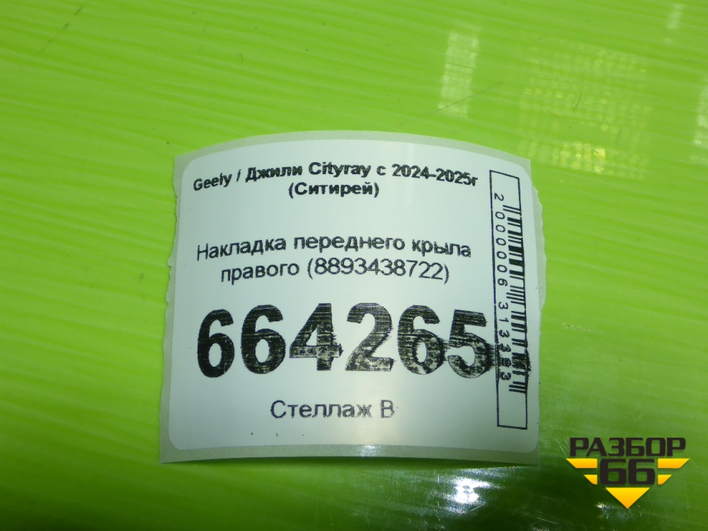 Накладка переднего крыла правого (8893438722) для Geely Cityray с 2024-2025г (Ситирей) в Москве