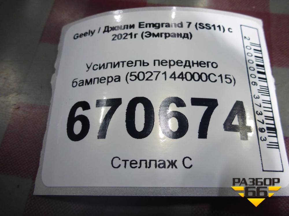 Усилитель переднего бампера (5027144000C15) для Geely Emgrand 7 (SS11) с 2021г (Эмгранд) в Москве