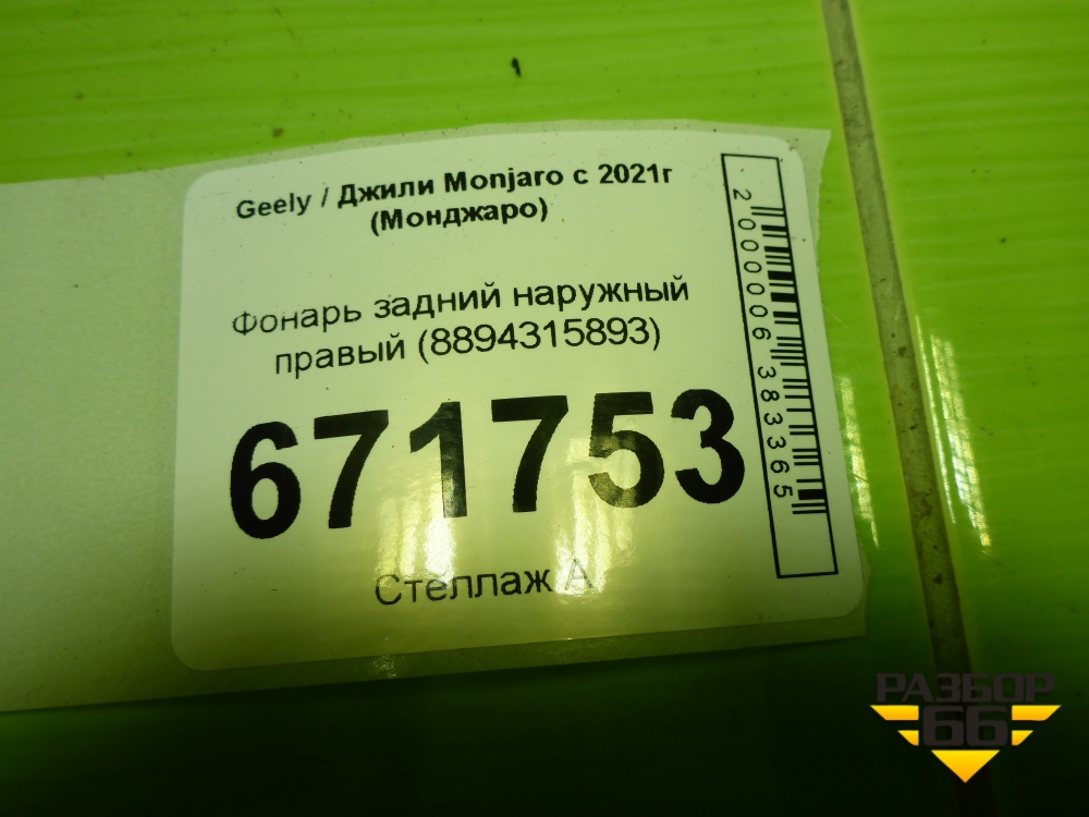 Фонарь задний наружный правый (8894315893) для Geely Monjaro с 2021г (Монджаро) в Москве