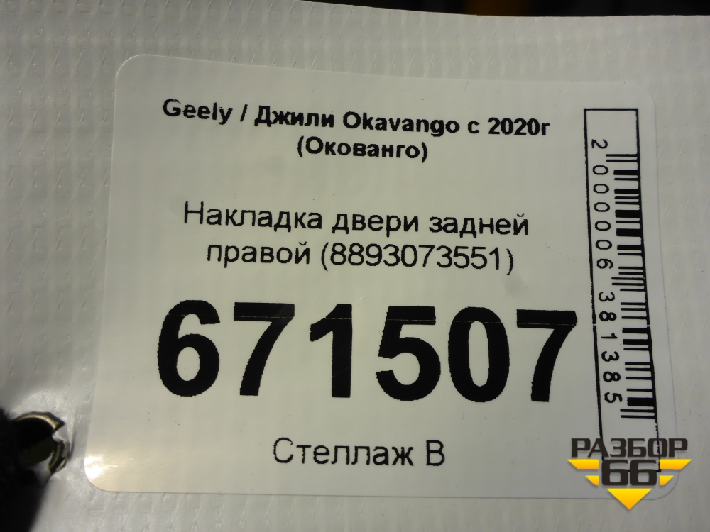 Накладка двери задней правой (8893073551) для Geely Okavango с 2020г (Окованго) в Москве
