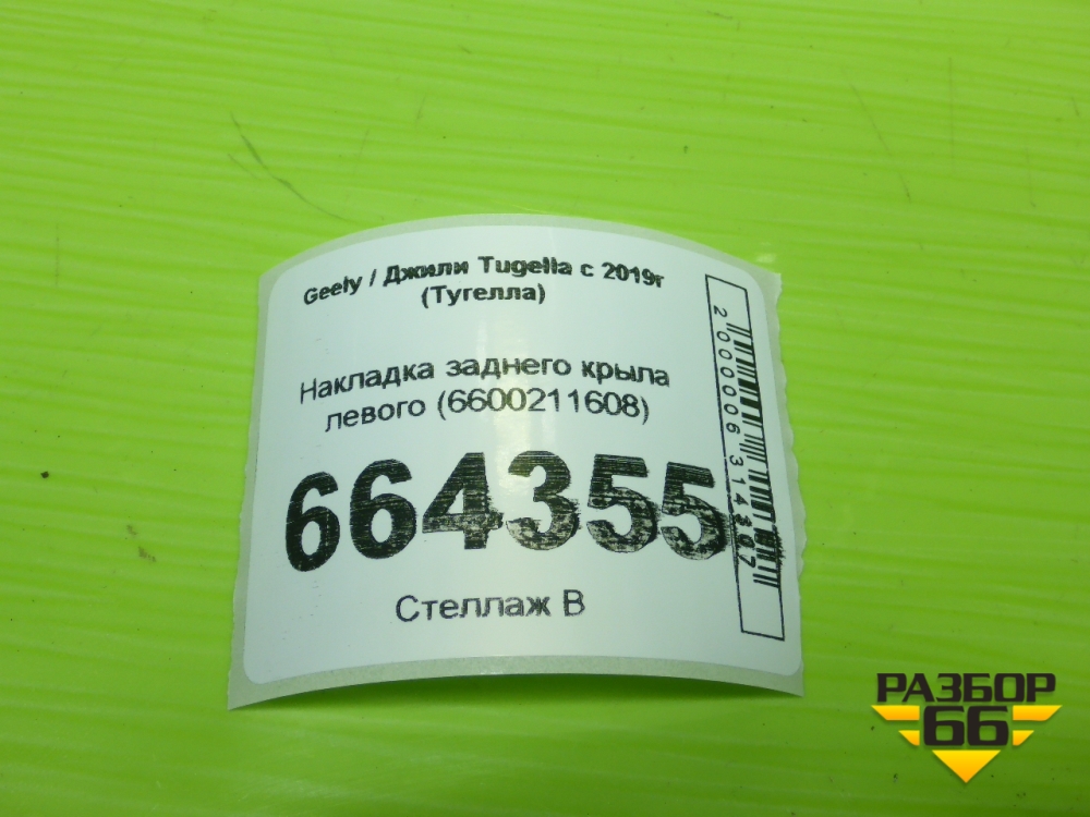 Накладка заднего крыла левого (6600211608) для Geely Tugella с 2019г (Тугелла) в Москве