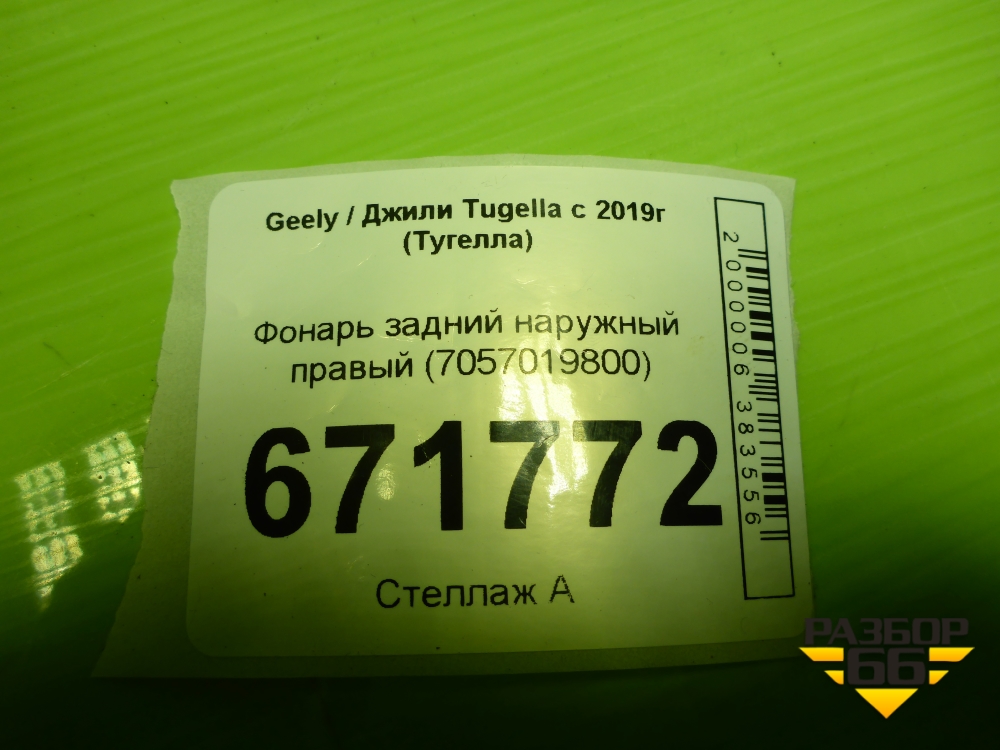 Фонарь задний наружный правый (7057019800) для Geely Tugella с 2019г (Тугелла) в Москве
