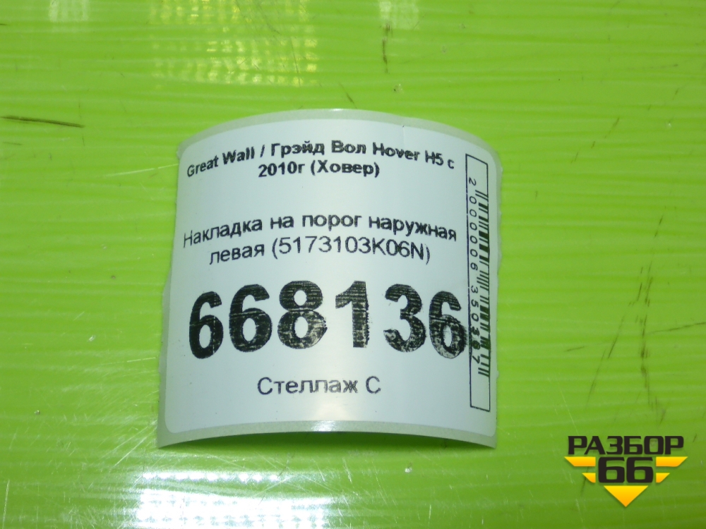Накладка на порог наружная левая (5173103K06N) для Great Wall Hover H5 с 2010г (Ховер) в Москве