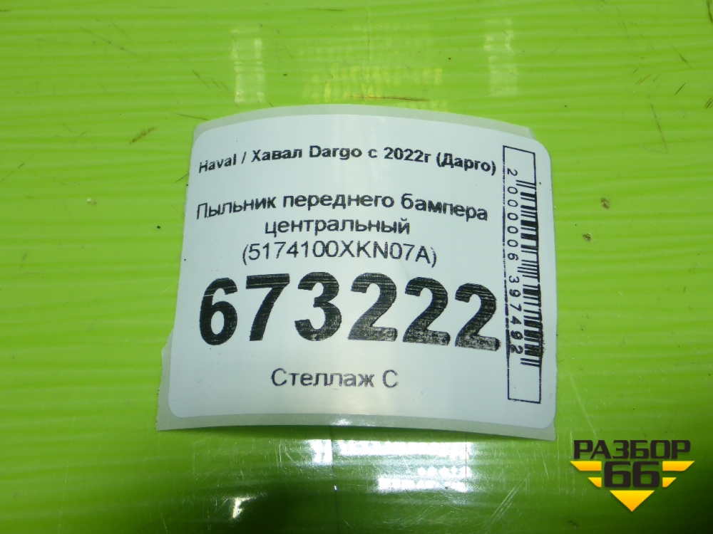 Пыльник переднего бампера центральный (5174100XKN07A) для Haval Dargo с 2022г (Дарго) в Москве