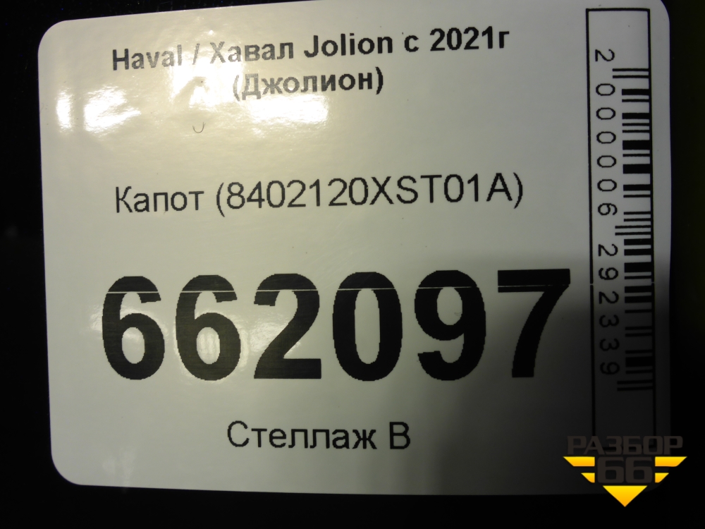 Капот (8402120XST01A) для Haval Jolion с 2021г (Джолион) в Москве