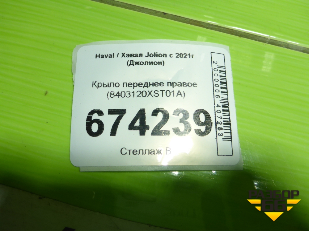 Крыло переднее правое (8403120XST01A) для Haval Jolion с 2021г (Джолион) в Москве