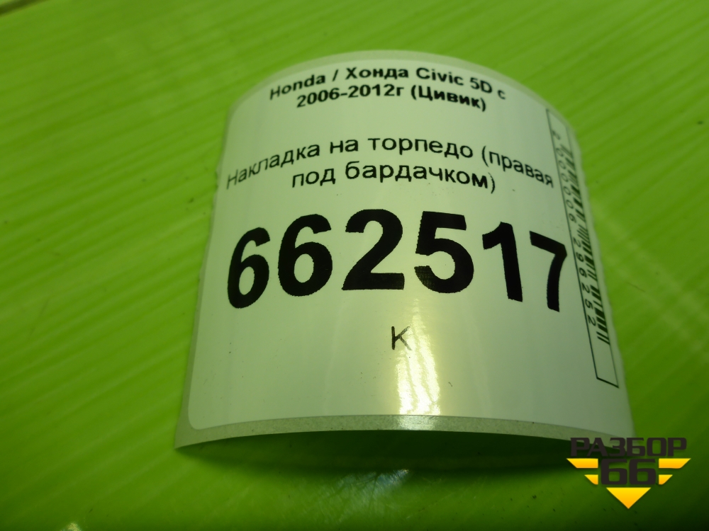 Накладка на торпедо (правая под бардачком) (77345SMJG01021) для Honda Civic 5D с 2005-2011г (Цивик) в Москве
