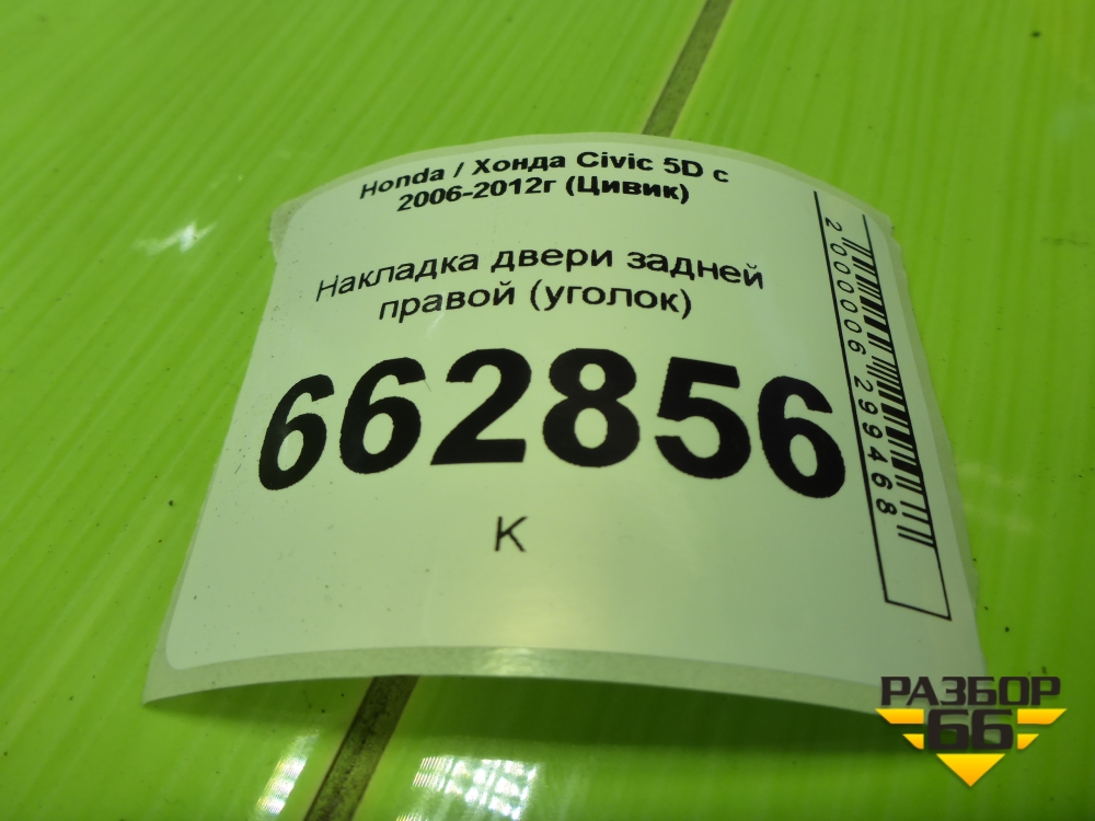 Накладка двери задней правой (уголок) (72940SMG) для Honda Civic 5D с 2005-2011г (Цивик) в Москве