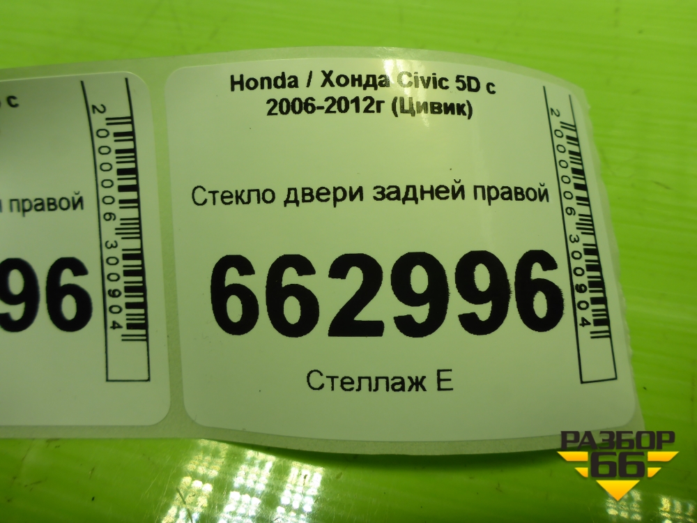 Стекло двери задней правой (73400SMGE00) для Honda Civic 5D с 2005-2011г (Цивик) в Москве