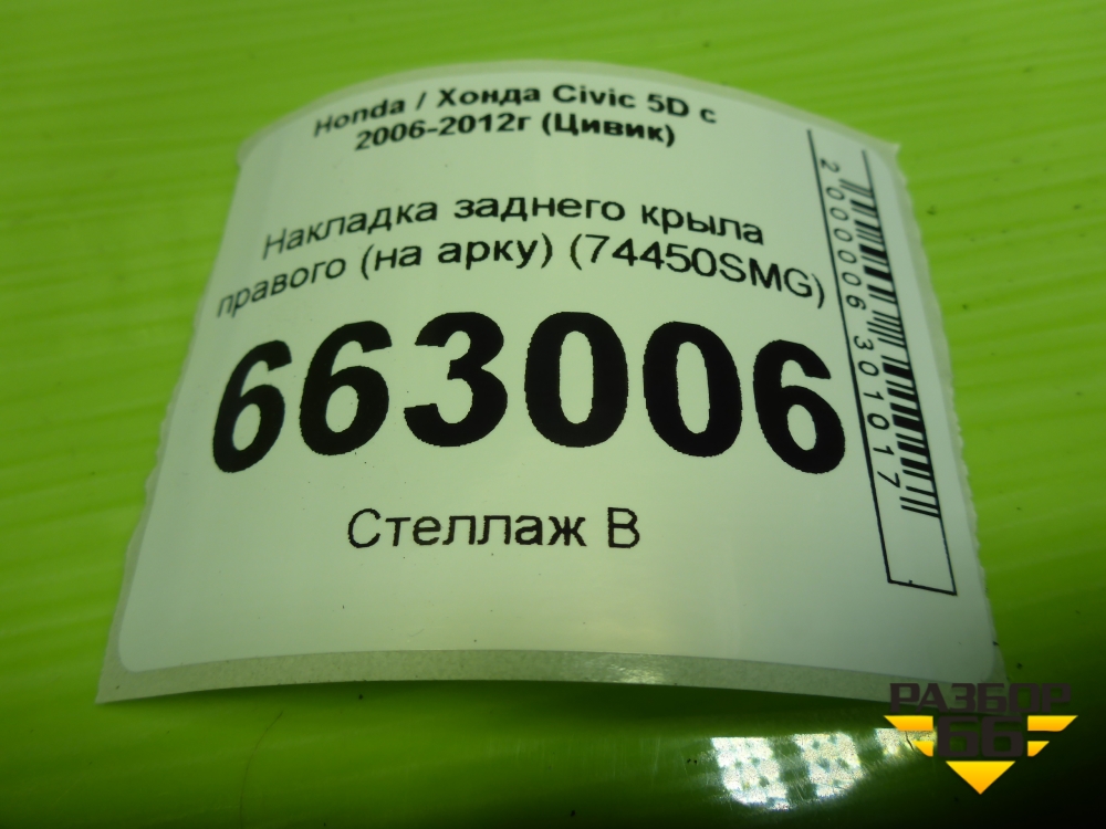 Накладка заднего крыла правого (на арку) (74410SMG) для Honda Civic 5D с 2005-2011г (Цивик) в Москве