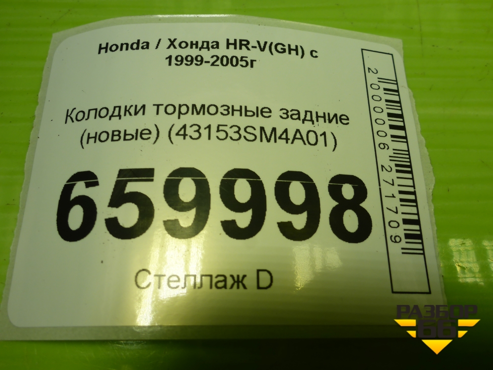 Колодки тормозные задние (новые) (43153SM4A01) для Honda HR-V(GH) с 1999-2005г (АшРВ) в Москве