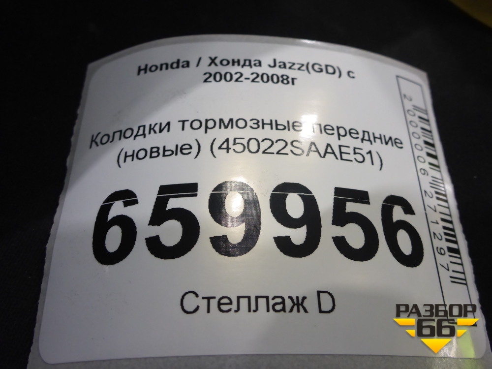 Колодки тормозные передние (новые) (45022SAAE51) для Honda Jazz(GD) с 2002-2008г (Джаз) в Москве