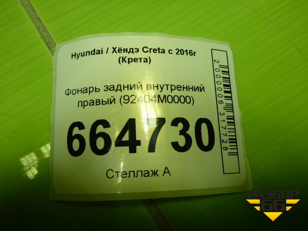 Фонарь задний внутренний правый (92404M0000) для Hyundai Creta с 2016г (Крета) в Москве