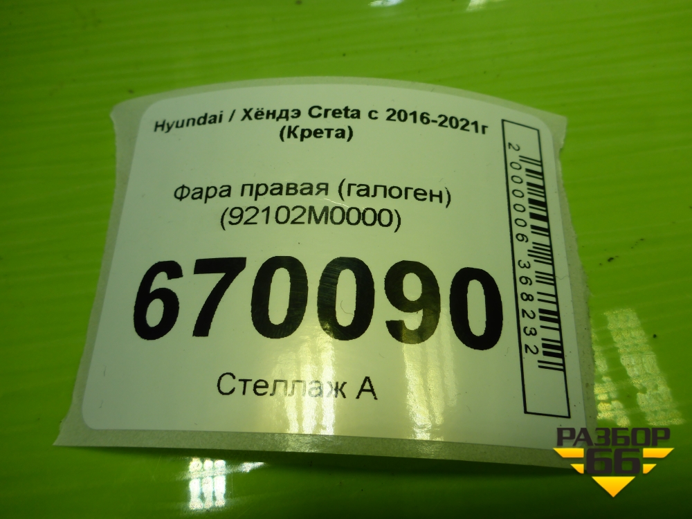 Фара правая (галоген) (92102M0000) для Hyundai Creta с 2016-2021г (Крета) в Москве