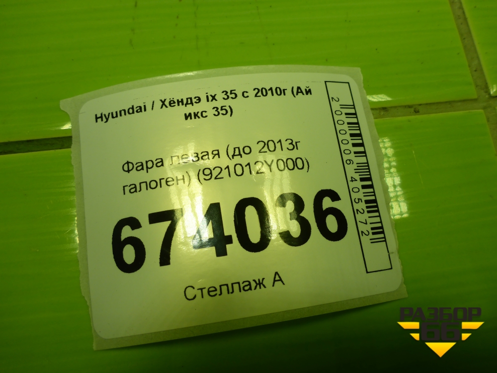 Фара левая (до 2013г галоген) (921012Y000) для Hyundai ix 35 с 2010г (Ай икс 35) в Москве