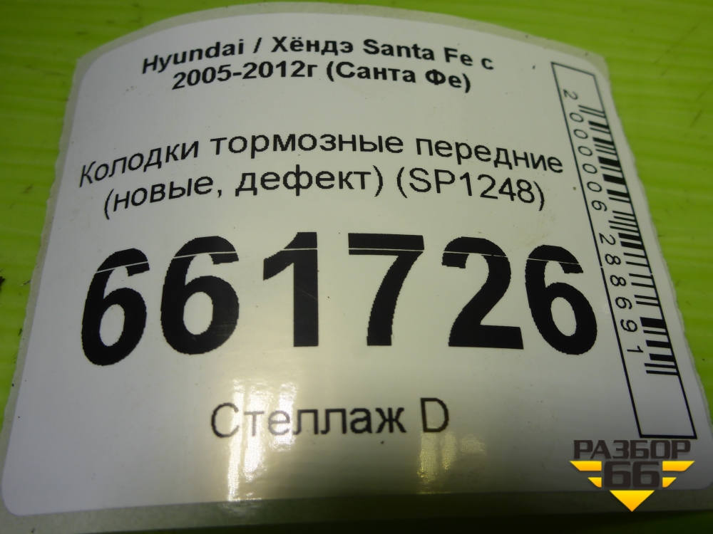 Колодки тормозные передние (новые, дефект) (SP1248) для Hyundai Santa Fe с 2005-2012г (Санта Фе) в Москве