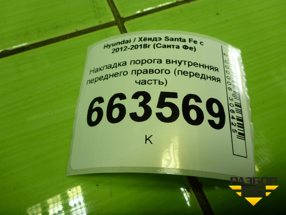 Накладка порога внутренняя переднего правого (передняя часть) (858272W010) для Hyundai Santa Fe с 2012-2018г (Санта Фе) в Москве