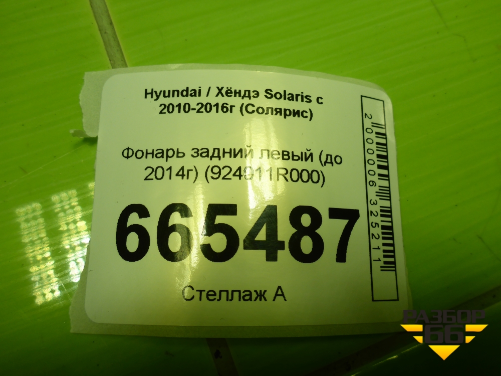 Фонарь задний левый (до 2014г седан Дубликат) (924011R000) для Hyundai Solaris с 2010-2016г (Солярис) в Москве