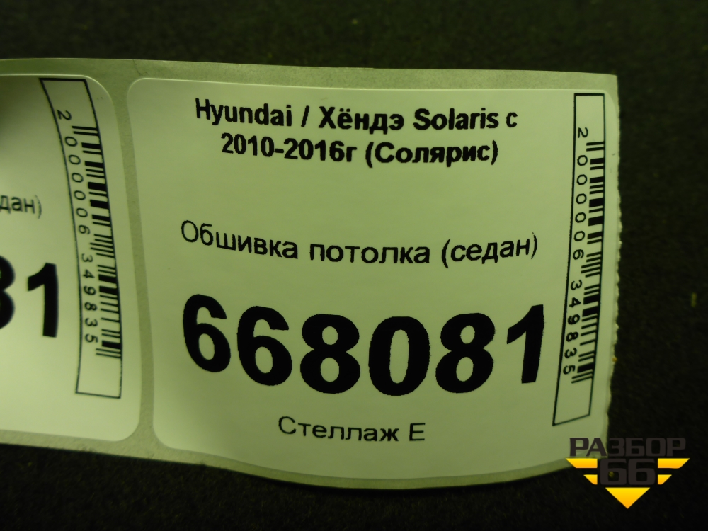 Обшивка потолка (седан) для Hyundai Solaris с 2010-2016г (Солярис) в Москве