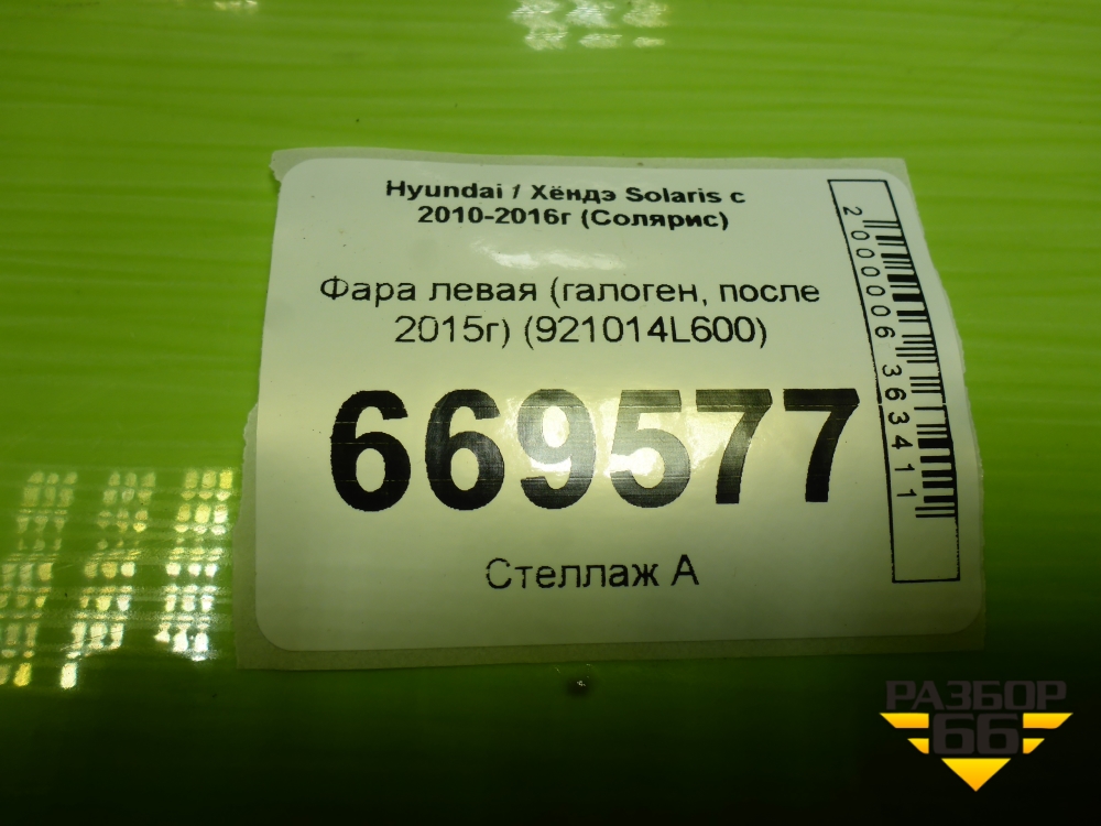 Фара левая (после 2014г галоген) (921014L600) для Hyundai Solaris с 2010-2016г (Солярис) в Москве