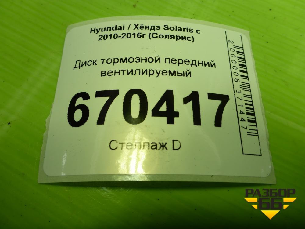 Диск тормозной передний вентилируемый для Hyundai Solaris с 2010-2016г (Солярис) в Москве