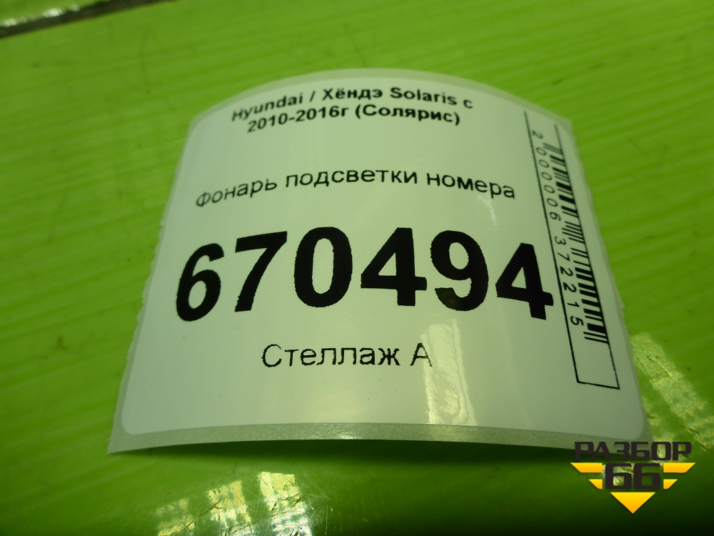 Фонарь подсветки номера (925010U200) для Hyundai Solaris с 2010-2016г (Солярис) в Москве