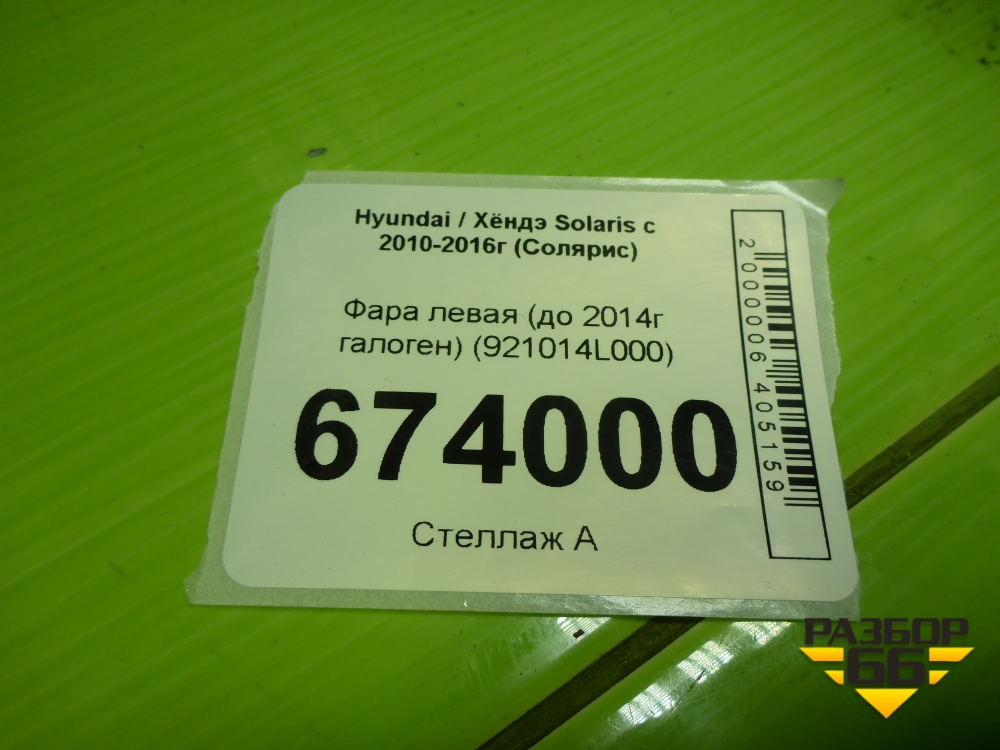 Фара левая (до 2014г галоген) (921014L000) для Hyundai Solaris с 2010-2016г (Солярис) в Москве