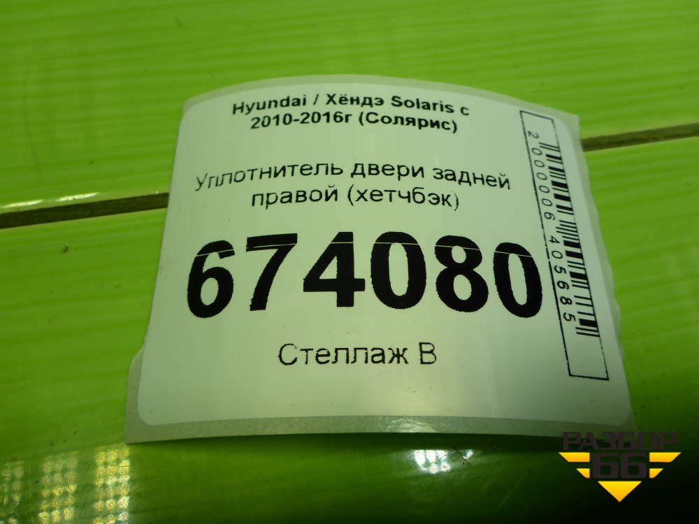 Уплотнитель двери задней правой (хетчбэк) для Hyundai Solaris с 2010-2016г (Солярис) в Москве
