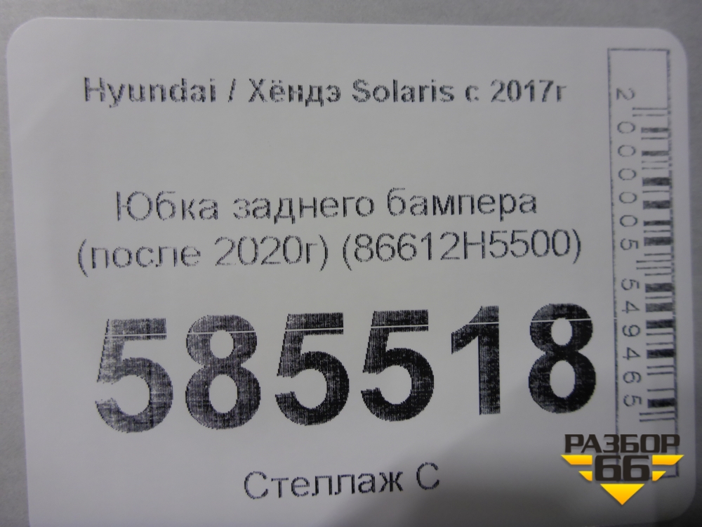 Юбка заднего бампера (после 2020г) (86612H5500) для Hyundai Solaris с 2017г (Солярис) в Москве