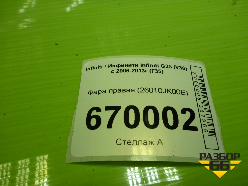 Фара правая (26010JK00E) для Infiniti Infiniti G35 (V36) с 2006-2013г (Г35) в Москве