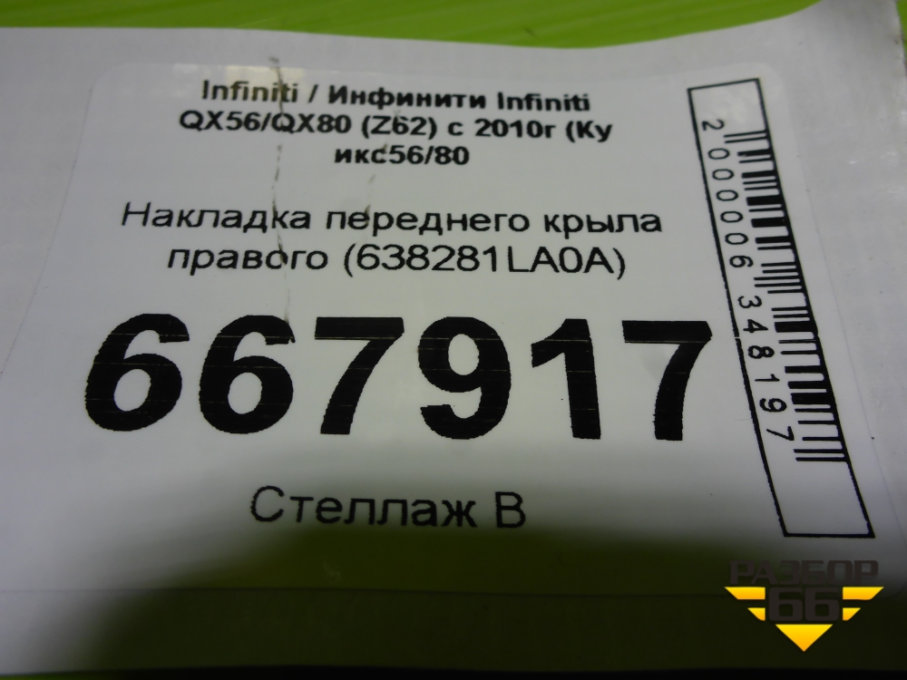 Накладка переднего крыла правого (638281LA0A) для Infiniti Infiniti QX56/QX80 (Z62) с 2010г (Ку икс56/80) в Москве