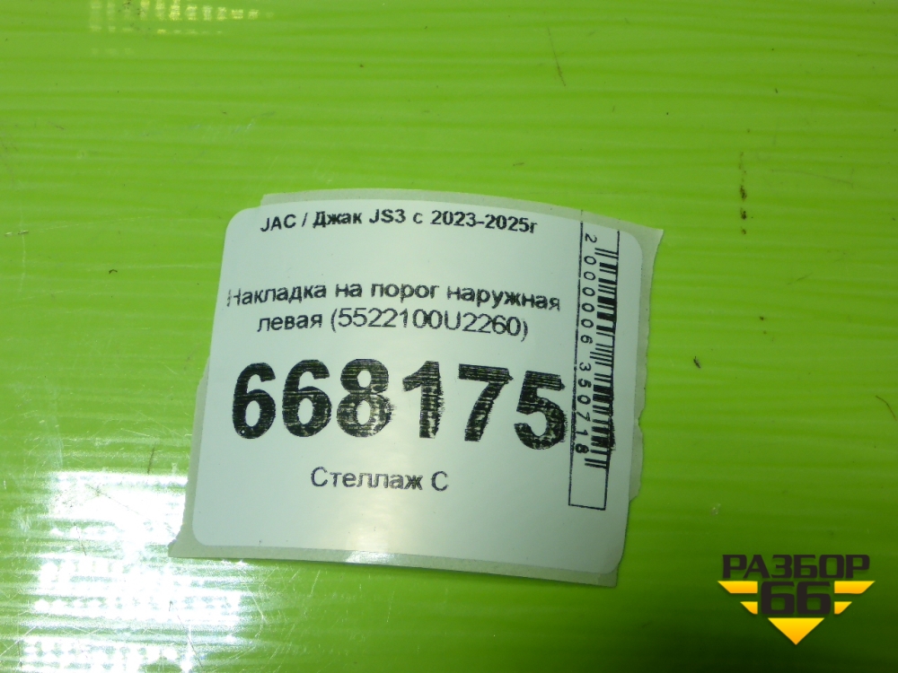 Накладка на порог наружная левая (5522100U2260) для JAC JS3 с 2023-2025г в Москве