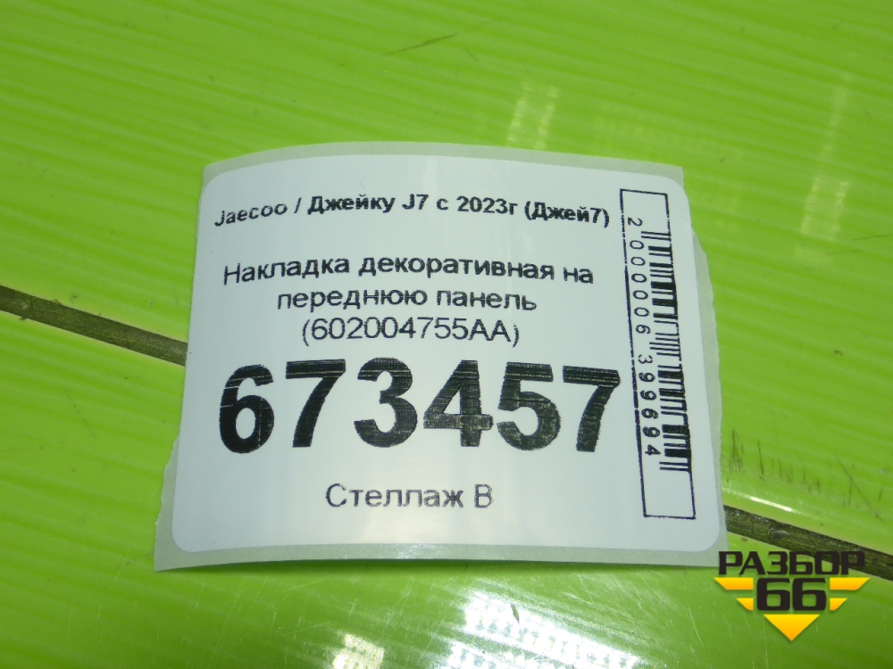 Накладка декоративная на переднюю панель (602004755AA) для Jaecoo J7 с 2023г (Джей7) в Москве