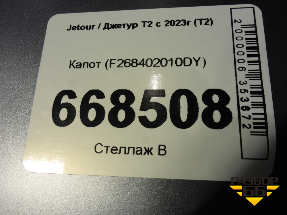 Капот (F268402010DY) для Jetour T2 с 2023г (Т2) в Москве