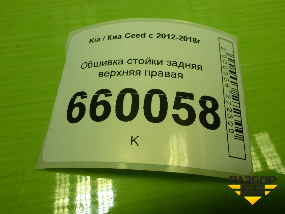 Обшивка багажника правая (верхняя 5ти дверный хетчбэк) (85861A2000) для Kia Ceed с 2012-2018г (Сид 2) в Москве