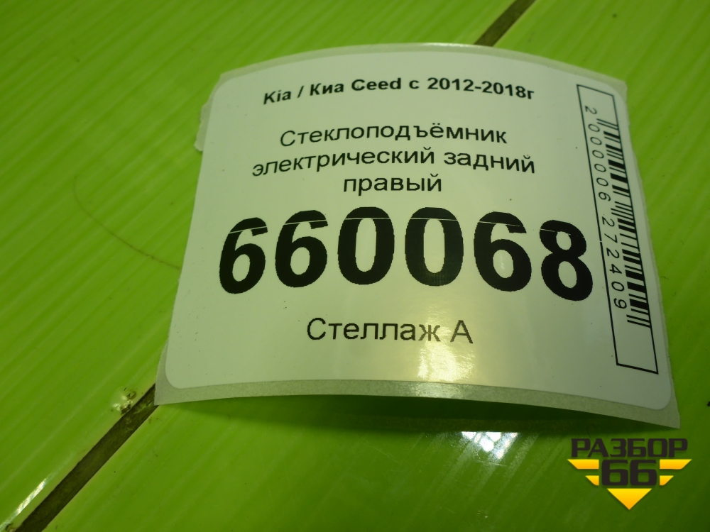 Стеклоподъёмник электрический задний правый (хетчбэк) для Kia Ceed с 2012-2018г (Сид 2) в Москве