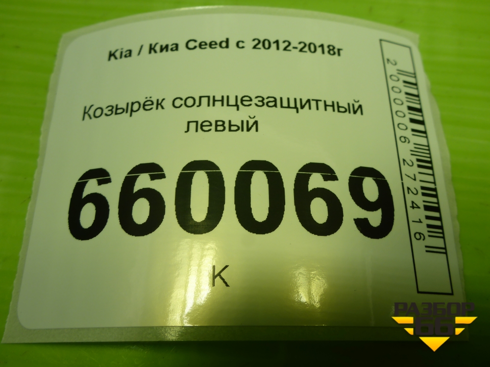Козырёк солнцезащитный левый для Kia Ceed с 2012-2018г (Сид 2) в Москве