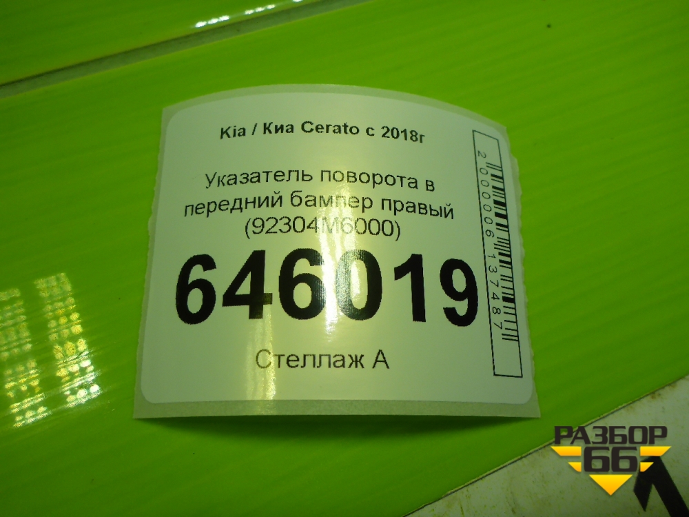 Указатель поворота в передний бампер правый (92304M6000) для Kia Cerato с 2018г (Серато3) в Москве