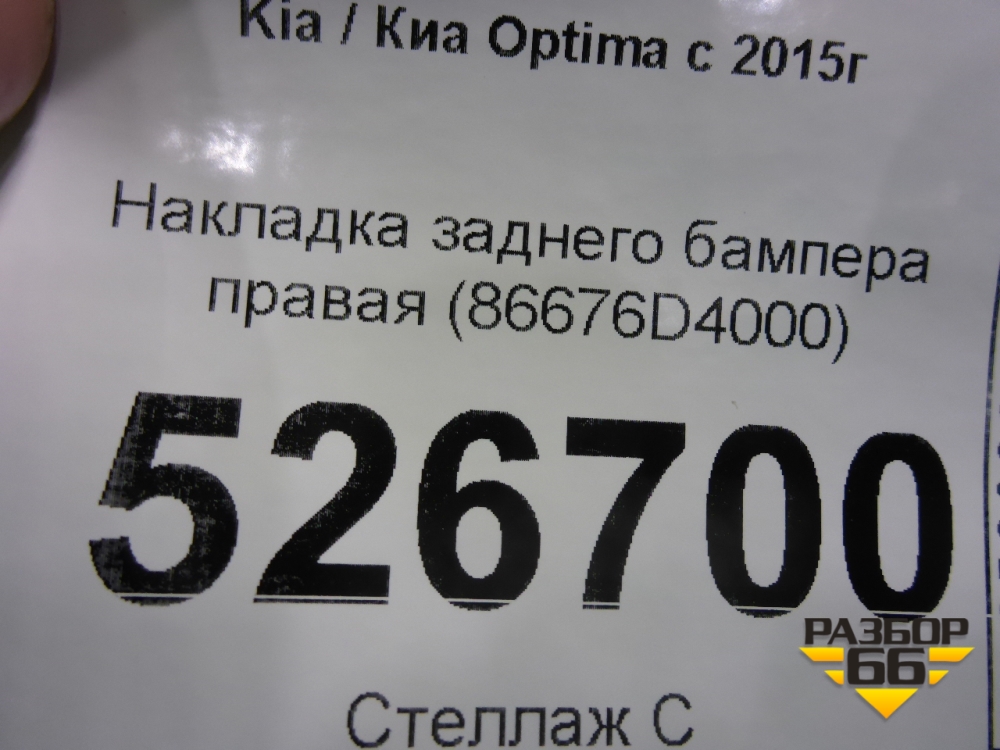 Накладка заднего бампера правая (86676D4000) для Kia Optima с 2015г (Оптима 4) в Москве
