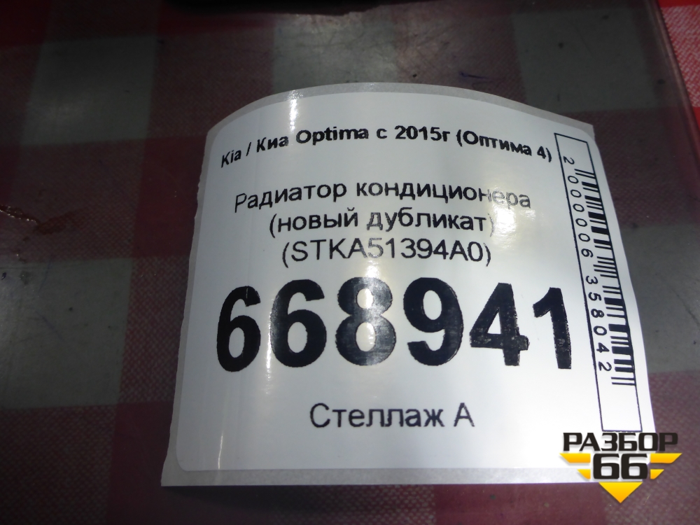 Радиатор кондиционера (новый дубликат) (STKA51394A0) для Kia Optima с 2015г (Оптима 4) в Москве