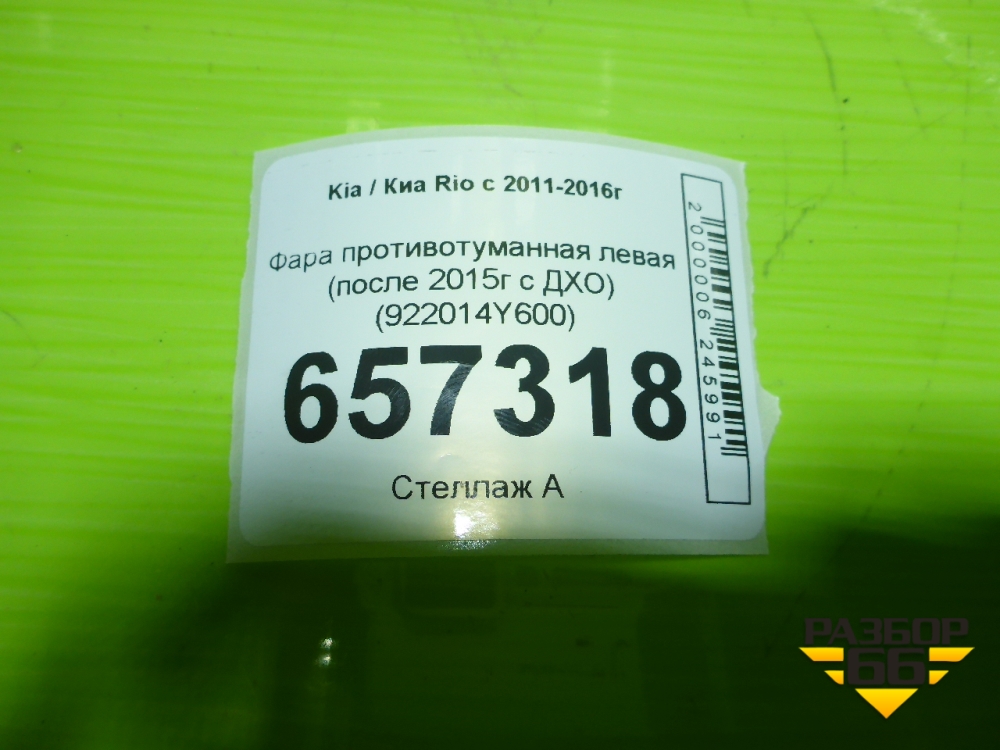 Фара противотуманная левая (после 2015г c ДХО) (922014Y600) для Kia Rio с 2011-2016г (Рио 3) в Москве