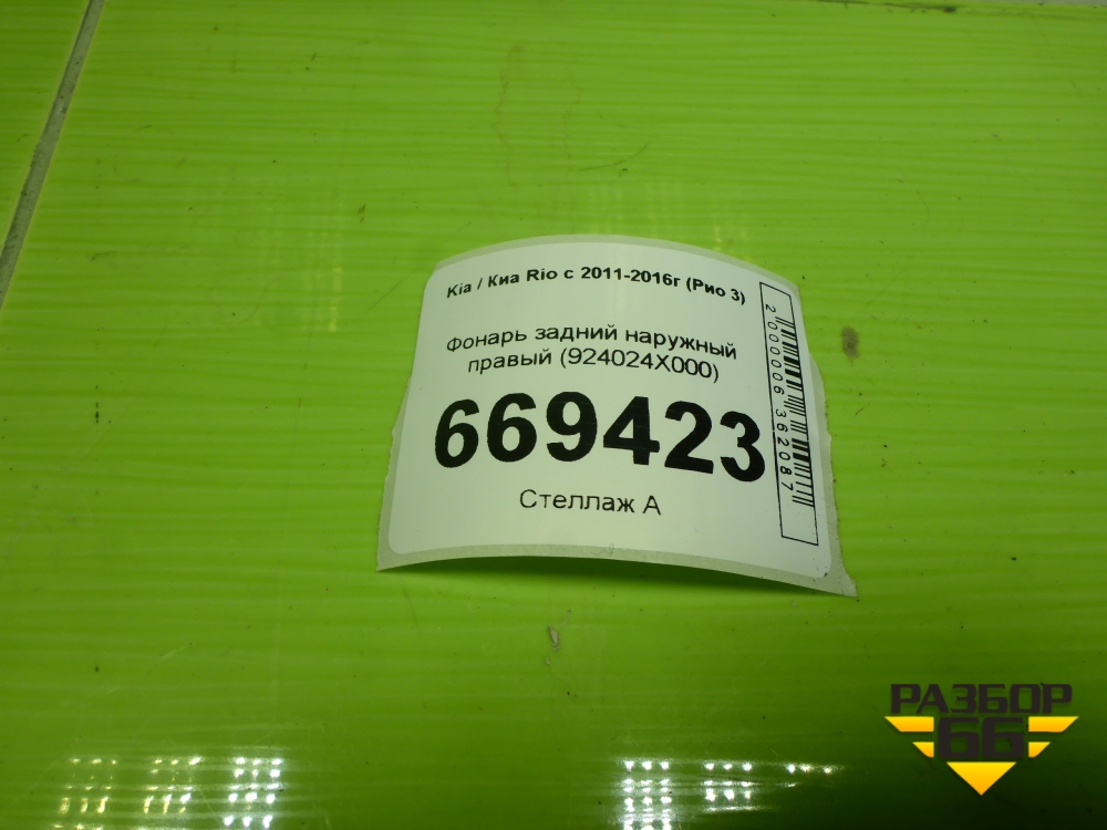Фонарь задний наружный правый (924024X000) для Kia Rio с 2011-2016г (Рио 3) в Москве