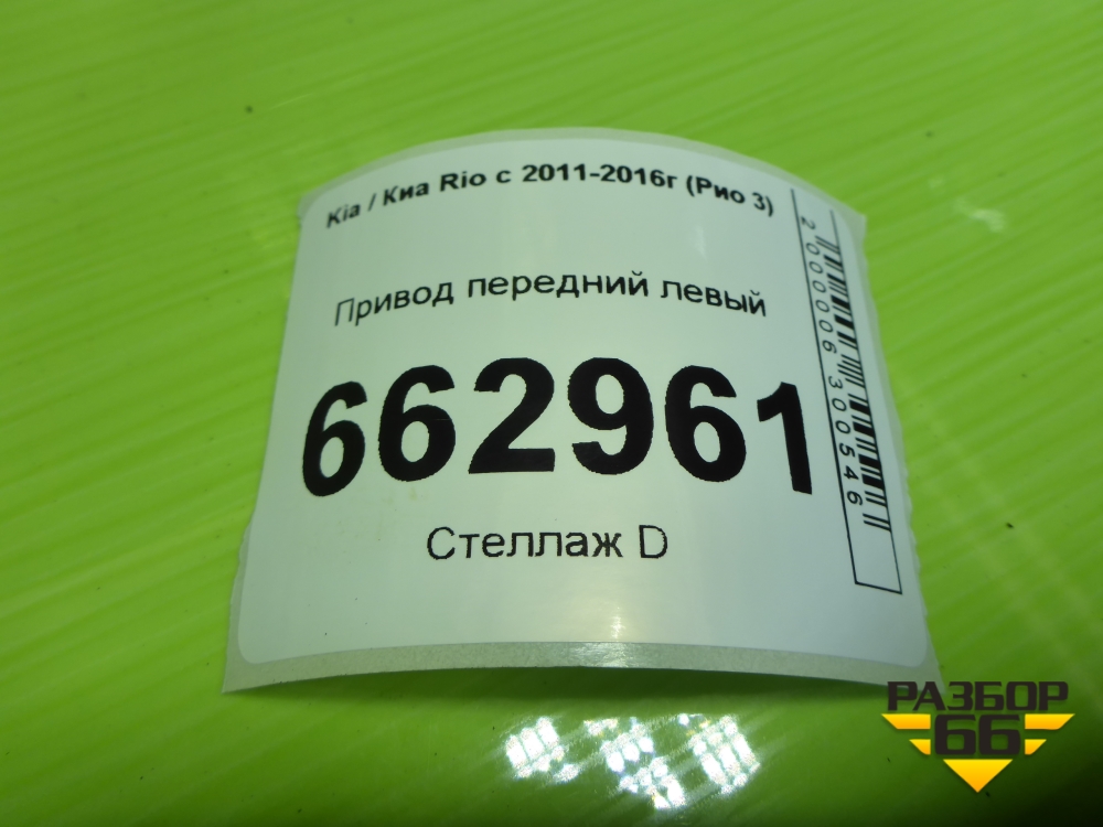 Привод передний левый (1.6л G4FC МКПП шлиц наруж-25,внутр-25) (495001R000) для Kia Rio с 2011-2016г (Рио 3) в Москве