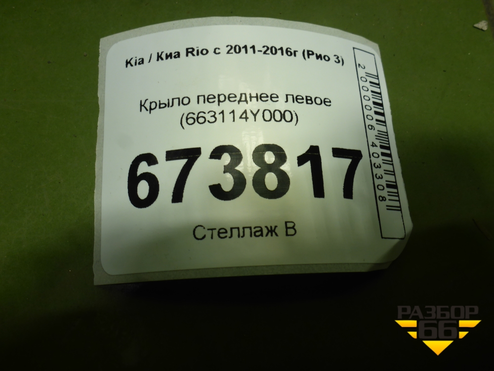 Крыло переднее левое (663114Y000) для Kia Rio с 2011-2016г (Рио 3) в Москве