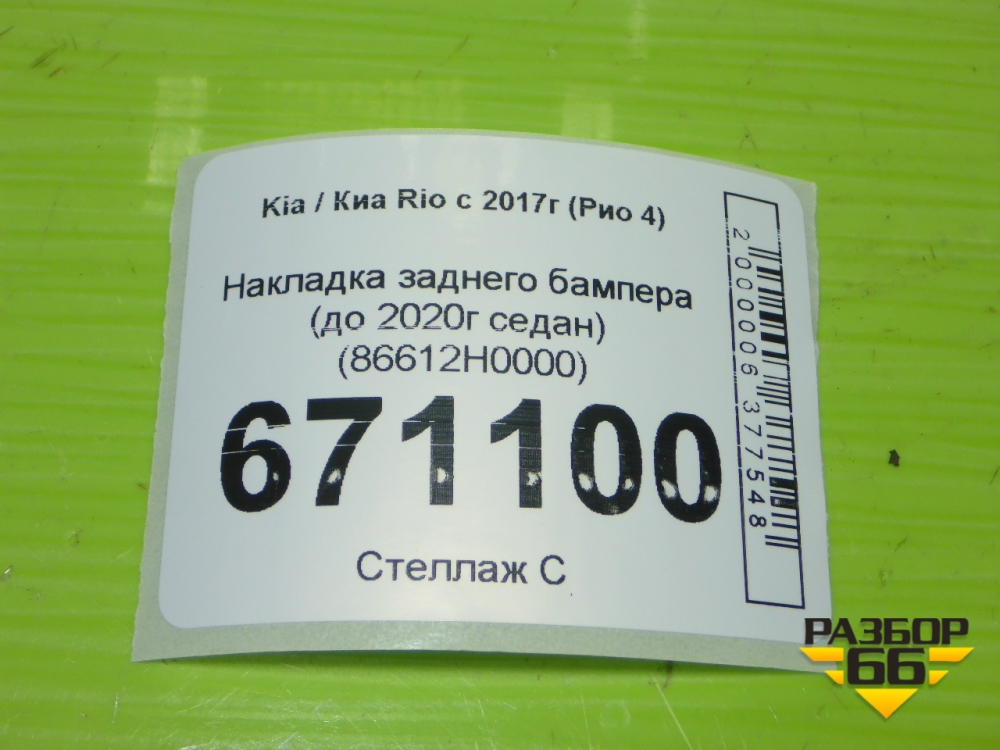 Накладка заднего бампера (до 2020г седан) (86612H0000) для Kia Rio с 2017г (Рио 4) в Москве